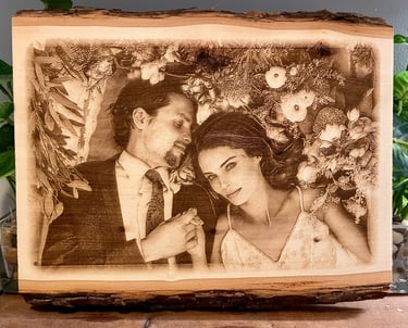 Custom laser engravings and photo printing on wood for your cherished memories.